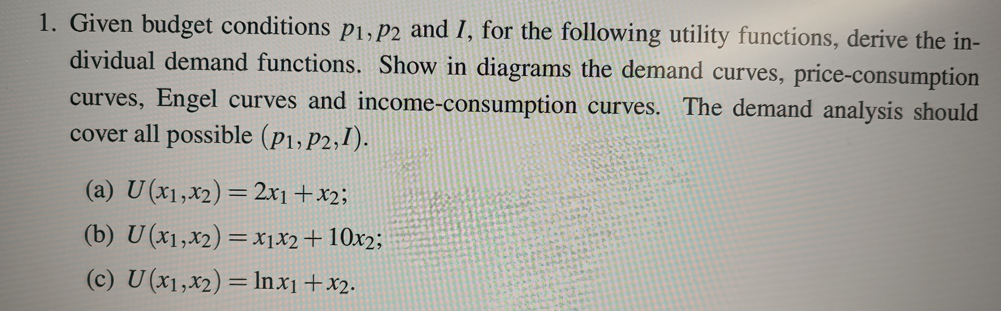 需求函数求出来 对着画就好了。第一个完全替代,第二个C-D 第三个拟线性。