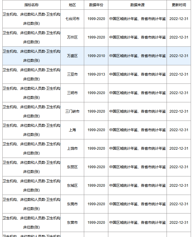 1、数据源名称:全国各城市卫生机构床位数和人员数