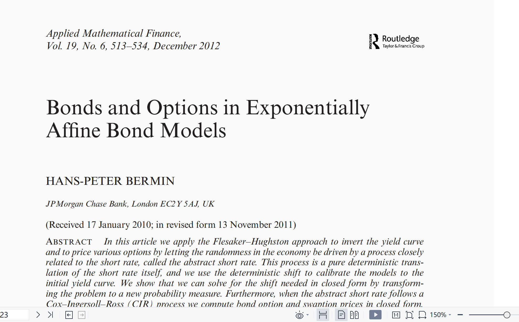 灰常灰呀 发表于 2023-4-19 14:48 Bonds and Options in Exponentially Affine Bond Models