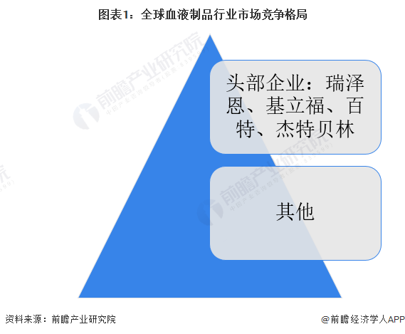 全球血液制品行业市场集中度非常高,呈寡头竞争格局,头部企业为瑞泽恩、基立福、百特、杰特贝林。