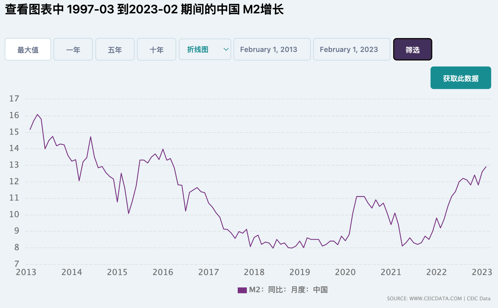 中国国家统计局4月18日公布的一季度GDP同比增速是超预期的4.5%,无论是与M0、M1相比,还是与M2相比,GDP的同比增速都明显更低,说明央行货币供给的力度远超过GDP实际增速。同时,结合2023年一季度居民净存款增加额8.19万亿人民币,可以看出,货币供给充足、但始终在金融系统内部循环,即居民得到贷款后存入银行、银行继续向居民放贷、居民得到贷款后继续存入银行……从技术角度来看,中国的通货绝对不是紧缩,反而是膨胀。