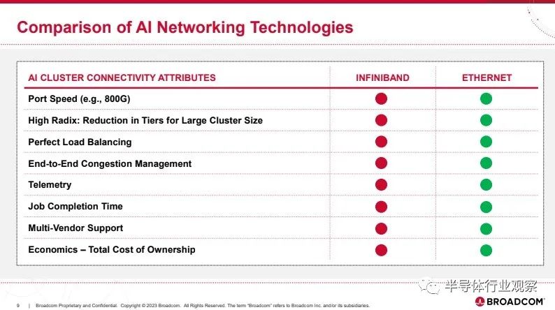 此外,Broadcom 表示,因为它可以处理 800Gbps 的端口速度(对于 PCIe Gen6 服务器)等等,所以它是一个更好的选择。对于将“AI”放在产品名称中,Broadcom 并没有做出过多解读,甚至关于网络 AI计算功能,他们也没涉及,这着实让人摸不着头脑,因为这是英伟达Infiniband 架构的主要卖点。