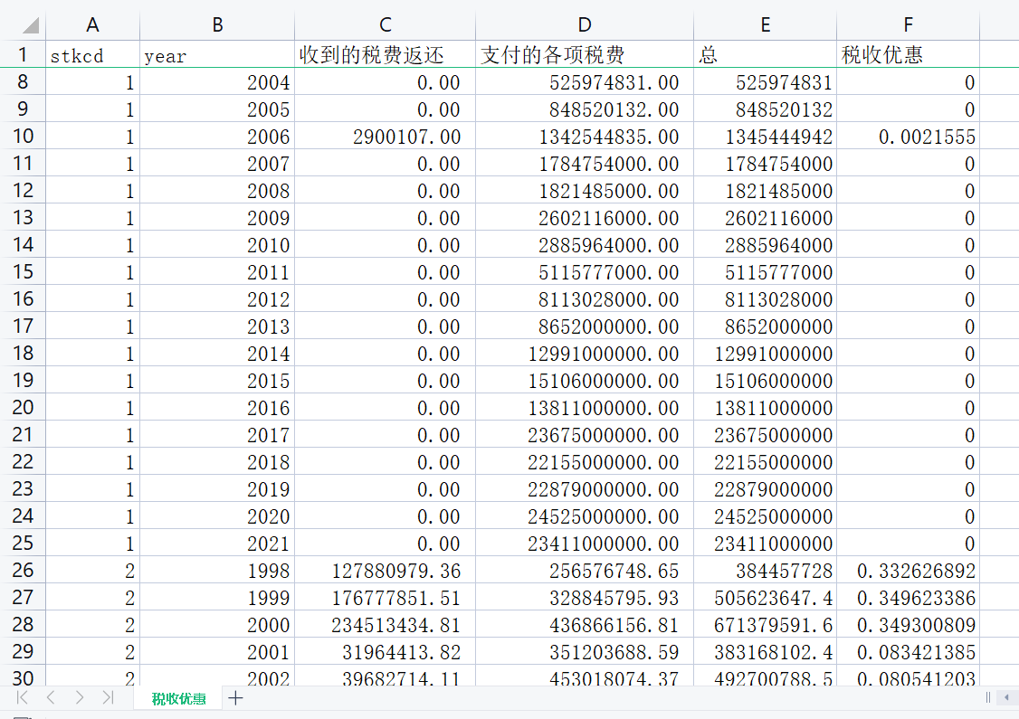 税收优惠税费返还数据,最新年份更新至2021 excel dta