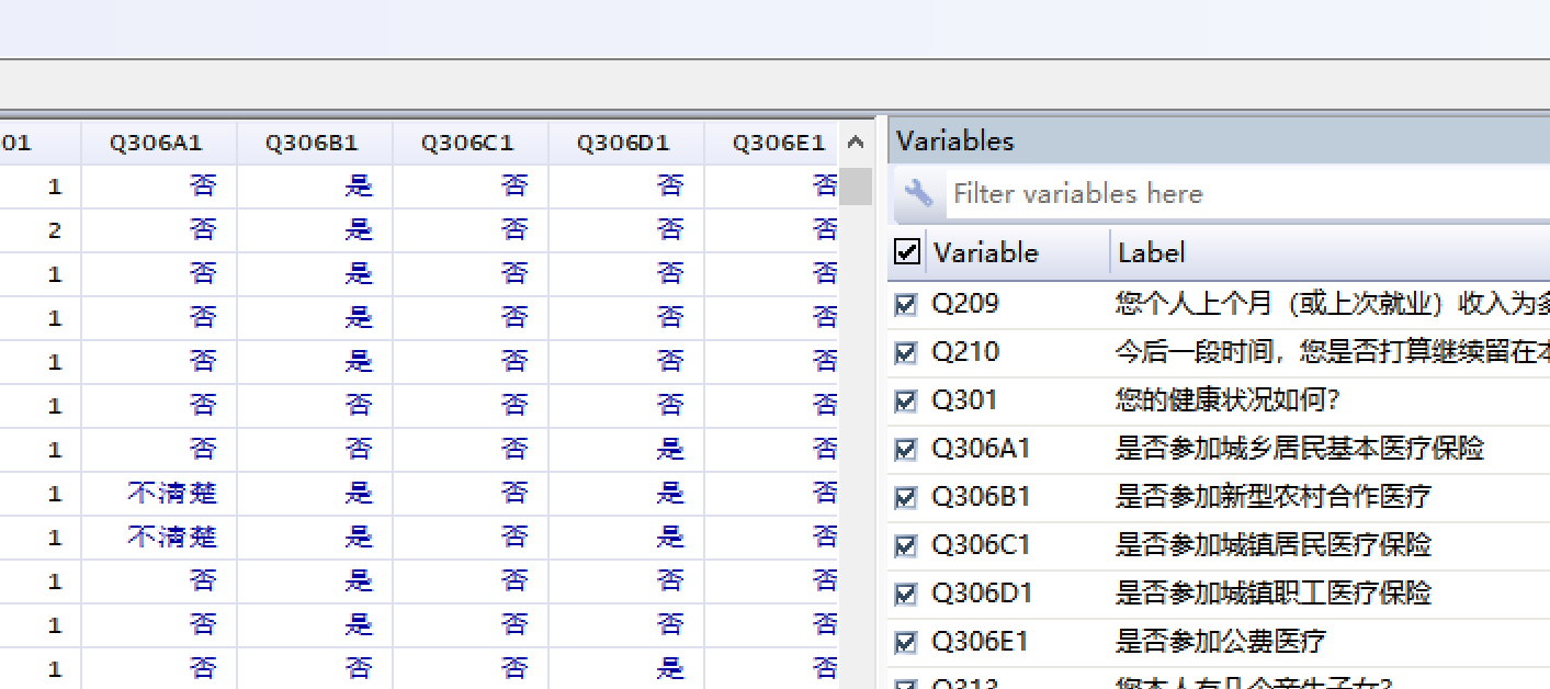 请教大神们:新手学习中——cmds问卷中提到是否参保,包括公费医疗、城镇职工、城镇居