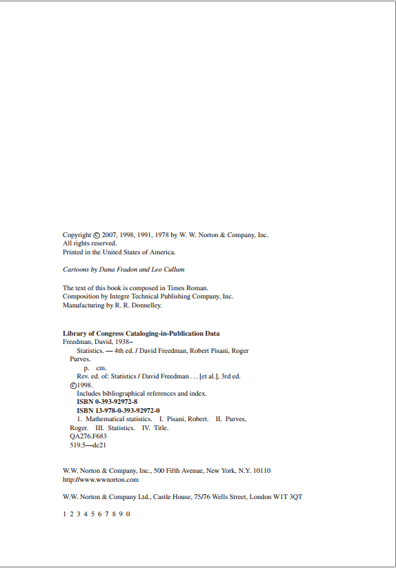 David Freedman, 2007. Statistics,4th edition.