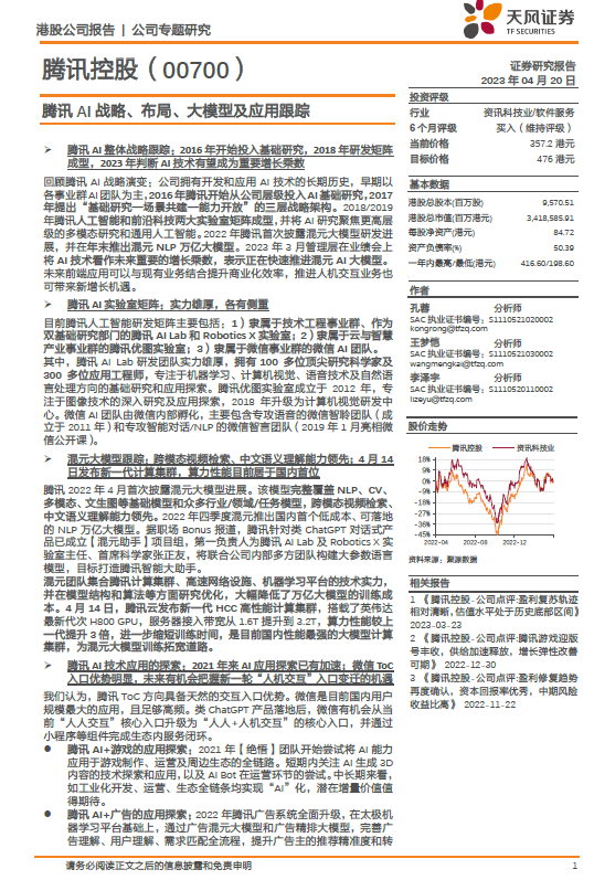 天风证券-腾讯控股(0700.HK)腾讯AI战略、布局、大模型及应用跟踪-230420.pdf