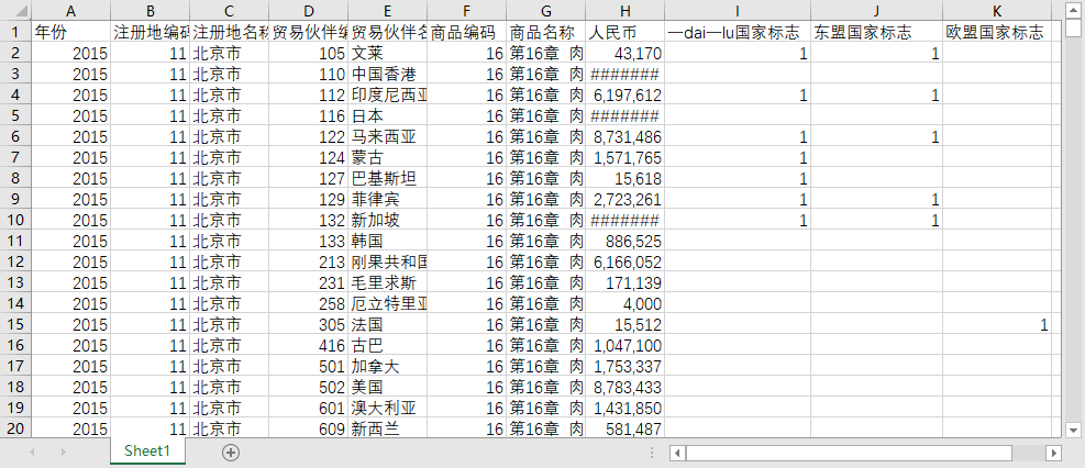 分别增加了:yidaiyilu国家标志、东盟国家标志、欧盟国家标志(1代表是,空白代表不是),便于您不同场景的统计分析利用