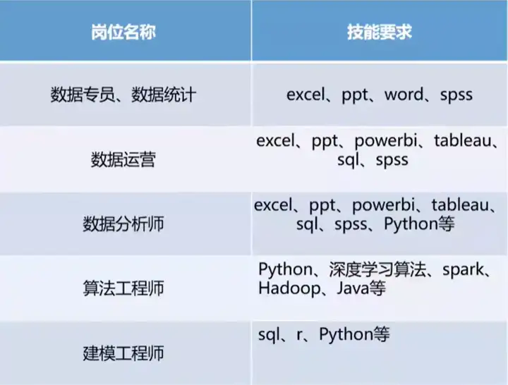 要了解常见数据分析岗位的要求,而这些要求通常都需要掌握一些常见工具。有些学生可能会选择性地学习,但是从就业和未来职场发展的角度来看,建议尊重市场需求,认真学习课程中设定的工具。这些工具具有普适性和通用性,因此在课程中需要设定相关模块。即使某些学生对某些工具不感兴趣,也应该认真学习,因为这是进入数据分析行业的理论基础,缺一不可。当然,根据学习能力和特长,可以选择深入学习某个工具或领域。常见的工具包括 Excel、word、SPSS等,常用的算法包括 Python、Hadoop等,建模可以用RE、Redis、r语言Python或SQL。虽然有些工具可能已经比较老,但是目前市场上仍然有很多企业在使用,因此仍需学习。
