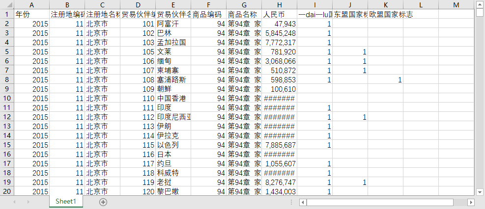 分别增加了:yidaiyilu国家标志、东盟国家标志、欧盟国家标志(1代表是,空白代表不是),便于您不同场景的统计分析利用