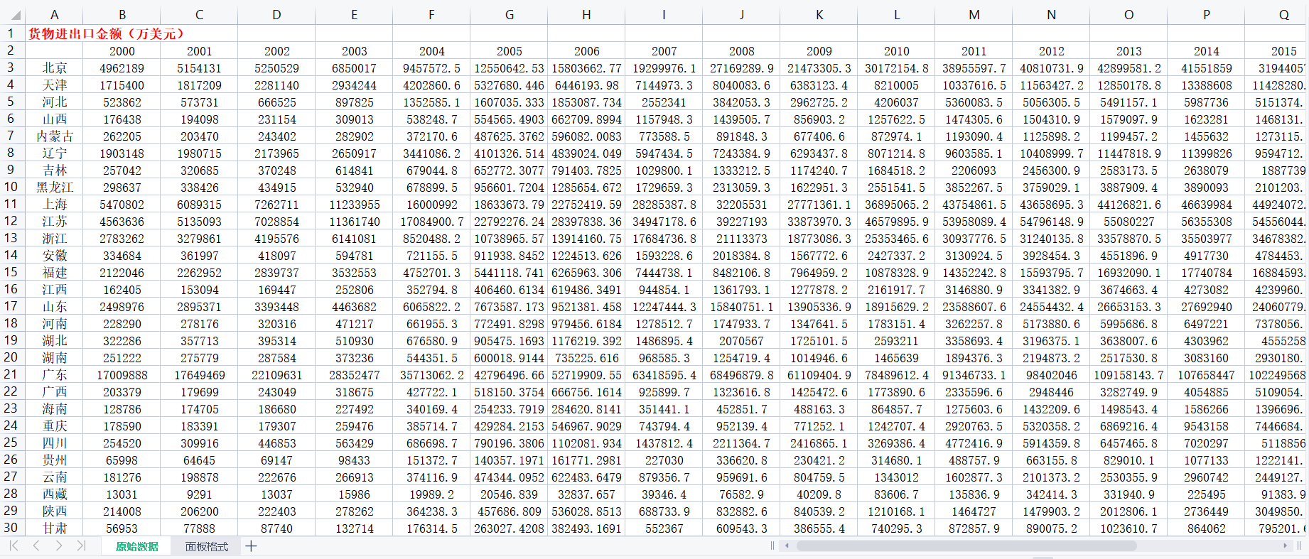 全国31省份进出口总额数据全国31省份GDP地区生产总值数据31省份对外开放程度数据