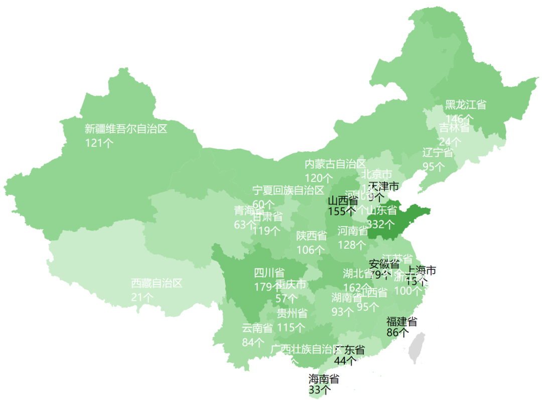 自2008年开始登记“农产品地理标志”产品以来,全国31个省(市)符合《农产品地理标志管理办法》规定的登记保护条件的产品逐渐被农业农村部准予登记,并依法实施保护。其中,最早拥有“农产品地理标志”品牌的为:宁夏、陕西、山东、山西、黑龙、湖北、内蒙、重庆、吉林、湖南、辽宁等9个省(市)。