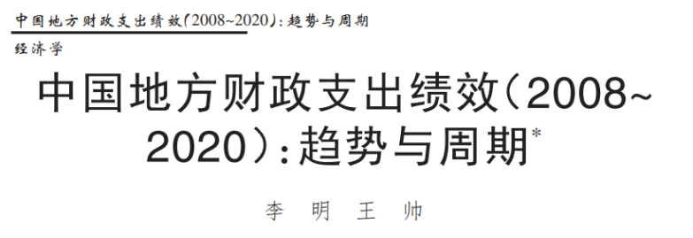 参考文献:李明,王帅.中国地方财政支出绩效(2008~2020):趋势与周期[J].管理世界,2023,39(02):58-72.