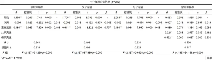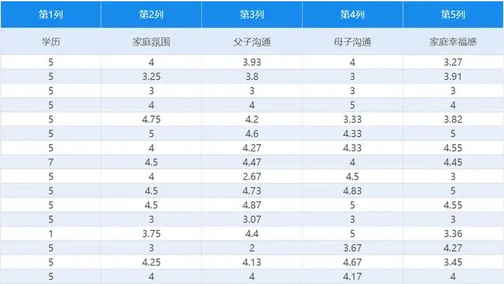 家庭幸福感=0.483+0.007学历+0.099家庭氛围+0.224父子沟通+0.522母子沟通