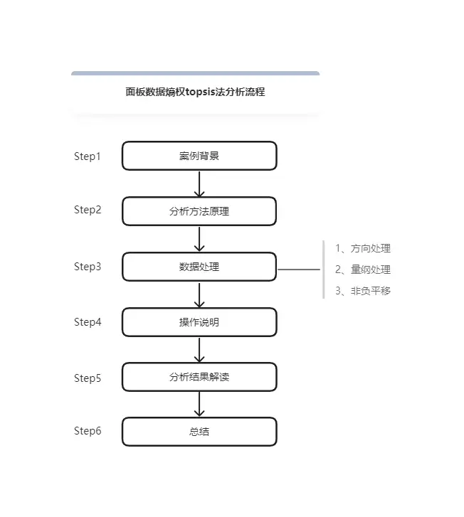 数据处理完成之后,接下来介绍如何使用SPSSAU进行面板数据熵权topsis法分析。