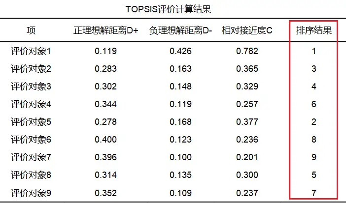 熵权topsis法实际上为熵权法后得到新数据,然后用新数据进行TOPSIS法研究。所以会输出熵值法计算权重结果表和topsis法评价计算结果表。但是熵权topsis法核心是进行topsis法研究,最终要得到评价对象的排序,所以熵值法计算结果只作为中间计算过程,更重要的是关注topsis法分析结果。