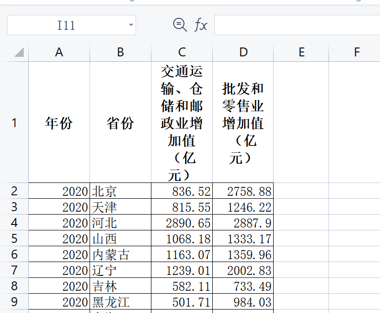 交通运输、仓储和邮政业增加值+批发和零售业增加值1978-2020省级