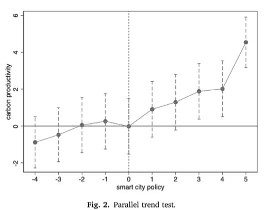 结果表明,如果不启动智能城市试点,两组城市之间就没有明显的差异,自第一年以来,碳生产率一直稳步上升。无论如何,研究样本从第三年开始发生了很大的变化,在第五年达到最大值。可以证明,智能城市试点政策对碳生产率的影响在一定程度上有所滞后,而且随着时间的延长,这一促进效应将更加明显。