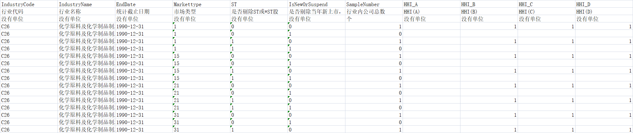 行业竞争度数据1990-2022年