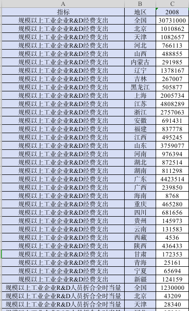 2008-2021年(无空值)31省R&D经费支出、R&D人员、R&D项目(课题)数、发明专利申请数、有效发明专利数、专利申请数
