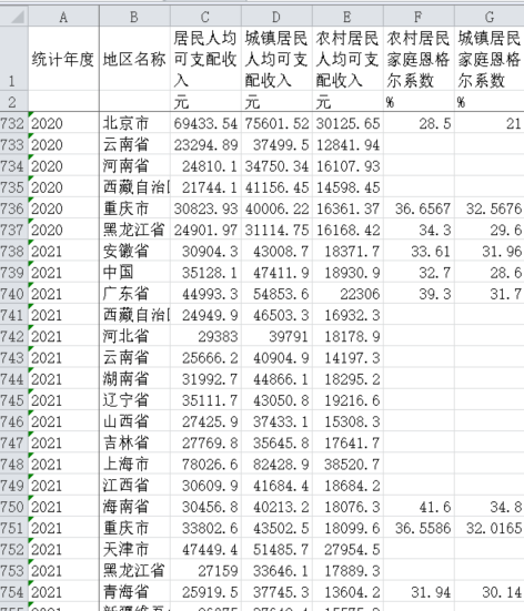 1.资料名称:2021-1978年中国省级家庭恩格尔系数
