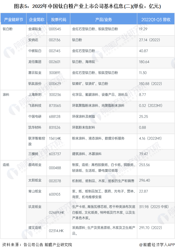 本文核心数据:钛白粉行业上市公司汇总;钛白粉行业上市公司基本信息;钛白粉行业上市公司钛白粉业务布局。