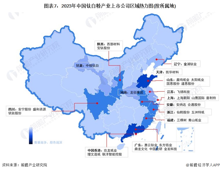 钛白粉产业链上的上市企业遍布全国多个省份,其中主要集中在广东省。广东省钛白粉产业上市企业有惠云钛业、东方锆业。