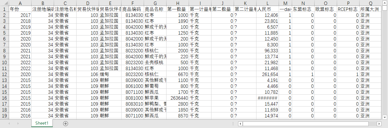 数据范围:各个省份,分别明细到 全球世界各国 的贸易数据,含进出口数量、金额
