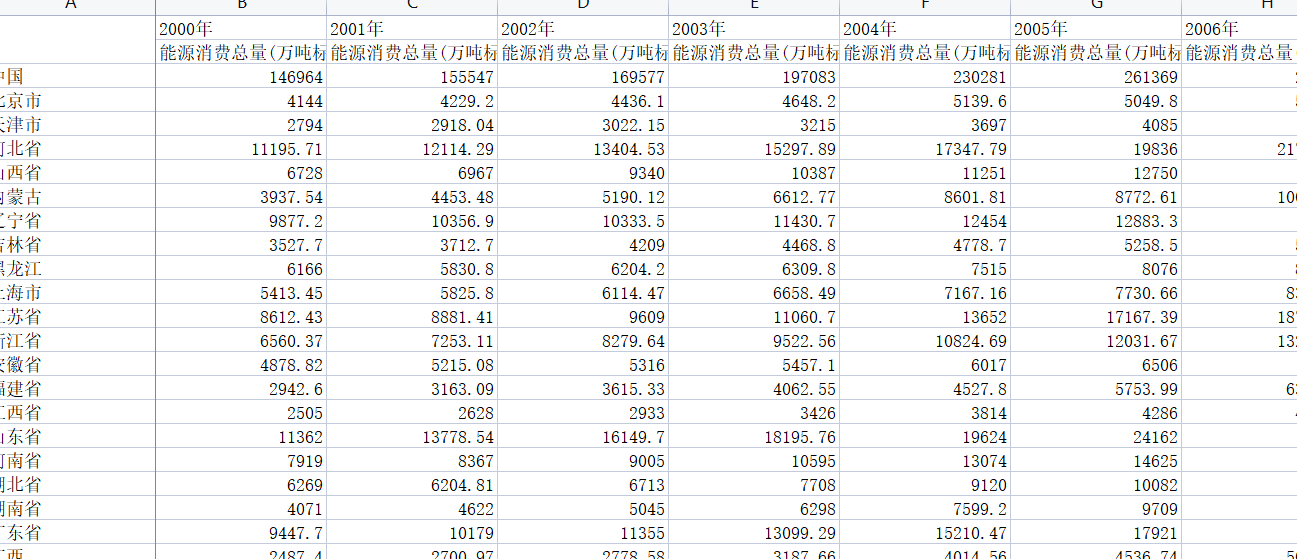5、缺失情况:无缺失,其中湖南2020年根据能源消费总量增速计算