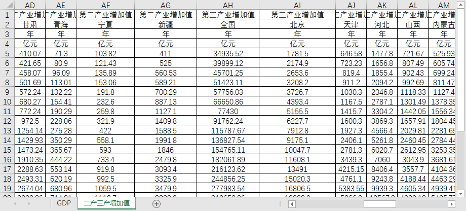 GDP地区国内生产总值、GDP增长指数、第二产业增加值、第三产业增加值四个指标