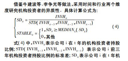 根据下列公式计算出相应额度机构投资者异质性数据