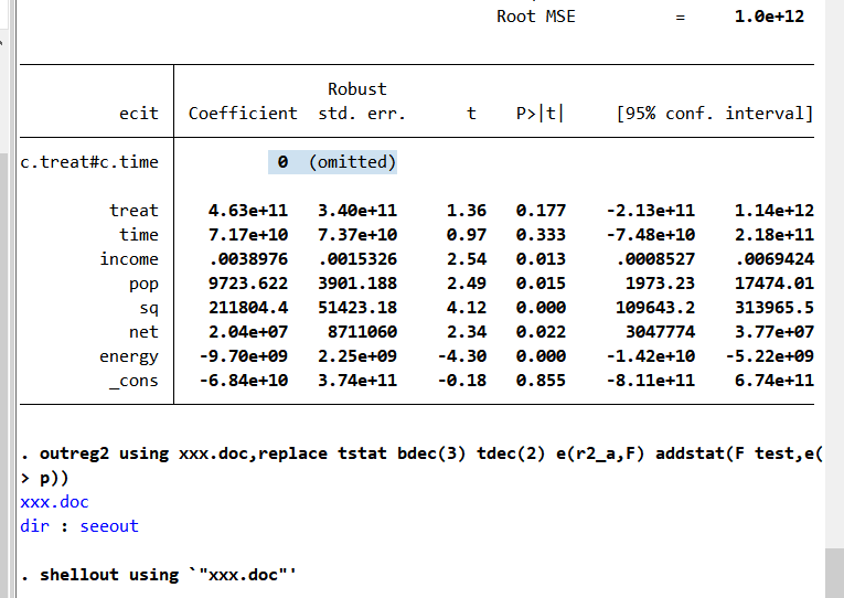 求大神,为什么time*treat被omitted了,用的DID,不能换模型了,有什么方法吗,谢谢!