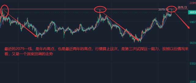 【走势分析】金价在四年内有三次触及2075一线附近,最近的一次就是,上周五的高点2079一线,目前金价在突破了2079一线之后进入小幅回撤整理,这明显是技术调整而不是转入下跌。结合前期的形态走势来看,第一次接触高点2075附近后有回调200刀的幅度,第二次接触高点2075附近后有回调180刀的波幅,那么接下来的走势,在本周确认不破近期阻力2030一线后,奉百禄就可以确认,行情走势处于技术回调阶段,至于回调到哪里,还是要看接下来的具体形态,金价理论上已经没有“上方阻力”或“前高”,一旦美联储转入降息进程,持有黄金的机会成本将下降,金价有理由进一步开启趋势性上涨,金价甚至不排除直奔疫情期间回撤幅度的161.8%反弹位2350一线附近,如果米国内部问题溃烂的速度比想象得更快,这一目标甚至有可能就在今年年内出现在视野内。只要记住老奉的话,中期看结构调整,长期看趋势走向,短期看形势控盘即可