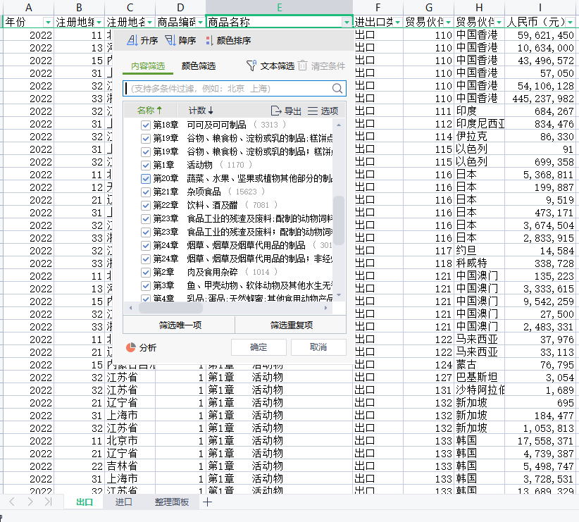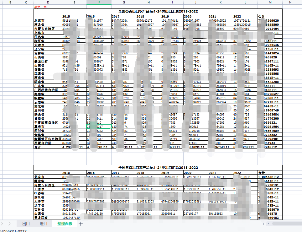 2022-2015中国全国31省份各省对全球世界各国农产品进出口市场结构HS1-24章-31省份各省农产品进口出口明细及面板数据一、数据介绍