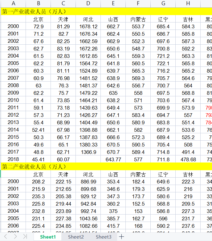 注:①数据均来自各省份统计年鉴(个别除外,标红处);
