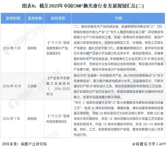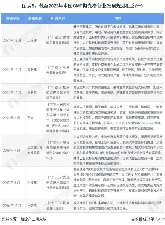 ——国家层面CMP抛光液行业规划汇总