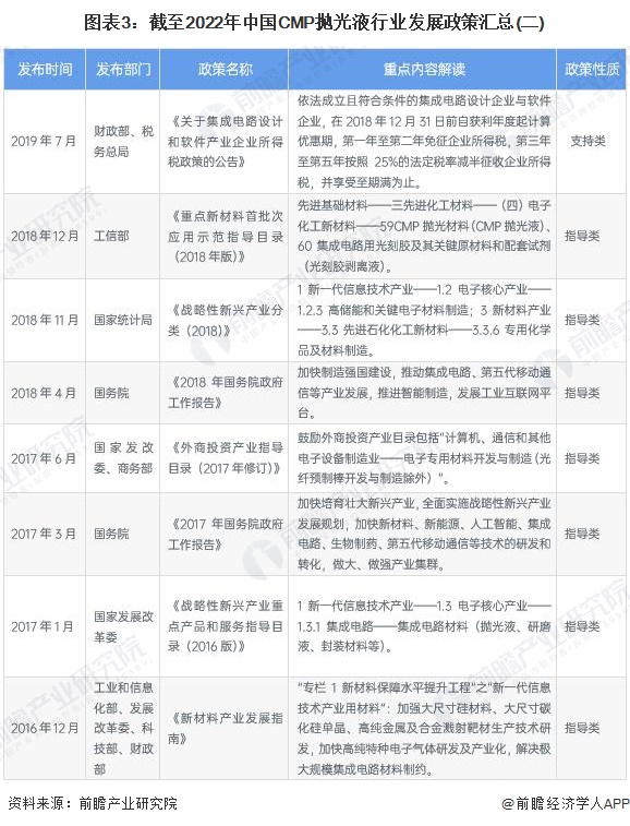 为鼓励CMP抛光液的发展、突破行业瓶颈,国家给予了大量政策支持,为CMP抛光液行业的发展提供了良好的环境氛围。