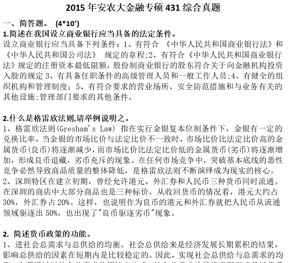 2015-2023年安徽农业大学431金融学综合真题,缺19年的真题,不过1年的真题不影响,全网都没有回忆版。