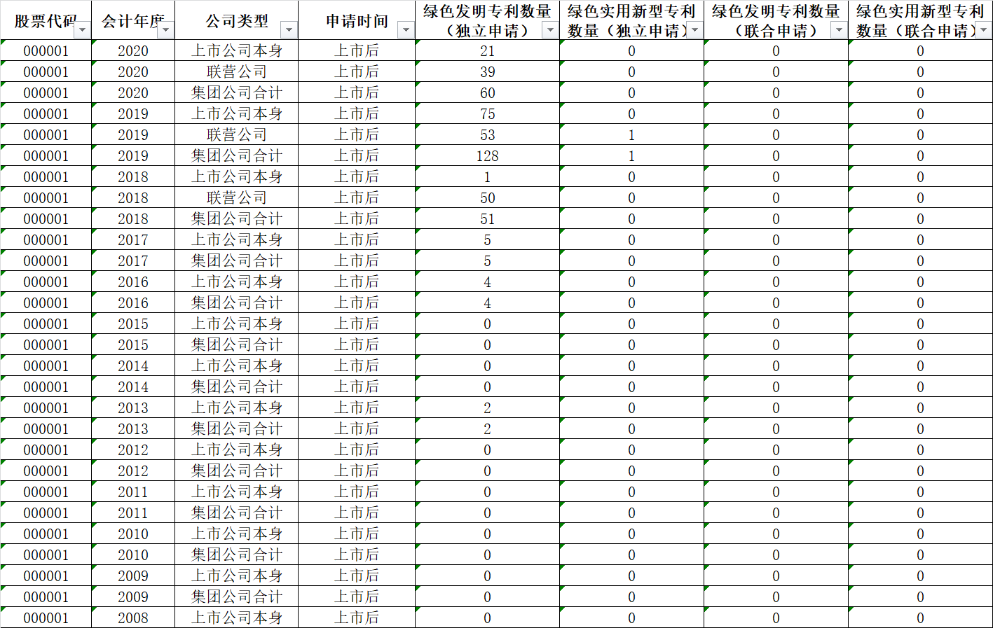 【上市公司专利数据大全】发明专利、实用新型专利申请 专利引用绿色专利 专利匹配数据