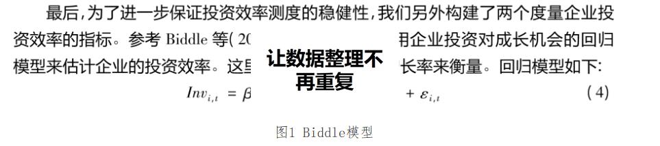 2.计算方式:参考《Journal of accounting and economics》Biddle G C,构建Biddle模型