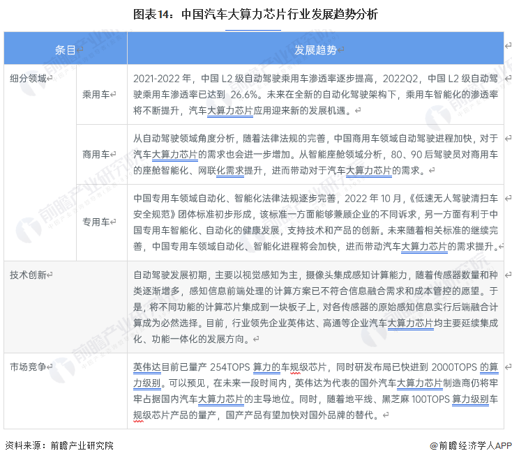 中国汽车算力发展及大算力芯片市场前景预测与投资战略规划分析报告》,同时前瞻产业研究院还提供产业大数据、产业研究、产业规划、园区规划、产业招商、产业图谱、产业链咨询、技术咨询、IPO募投可研、IPO业务与技术撰写、IPO工作底稿咨询等解决方案。