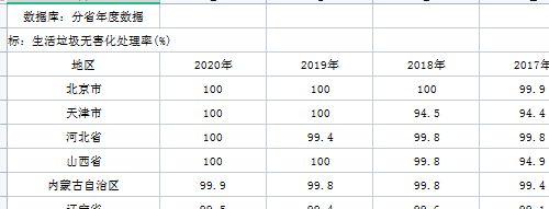 分省宏观年度库-资源和环境-城市生活垃圾清运和处理情况-生活垃圾无害化处理率_市辖区-1998-2021年