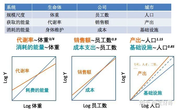 图2 图片资料来源:韦斯特 《规模》可以看出,当企业发展到一定阶段,员工成本的增长会超过销售额的增长,从而损害企业利润的表现。相信有过企业经营实践的同学都有这个感觉吧,当企业面临员工成本和销售额增长的交叉点时,我们往往有两个选择,一个是保守做法,控制用工数量,这在短期内有助于成本的控制,但实际上对企业的进一步发展增长是不利的;另外一个做法就是,谋求开发新的能力或者开展新的业务,使得销售的增长线的斜率升高,但其实,很快,我们又会发现员工成本支出的斜率线赶了上来。