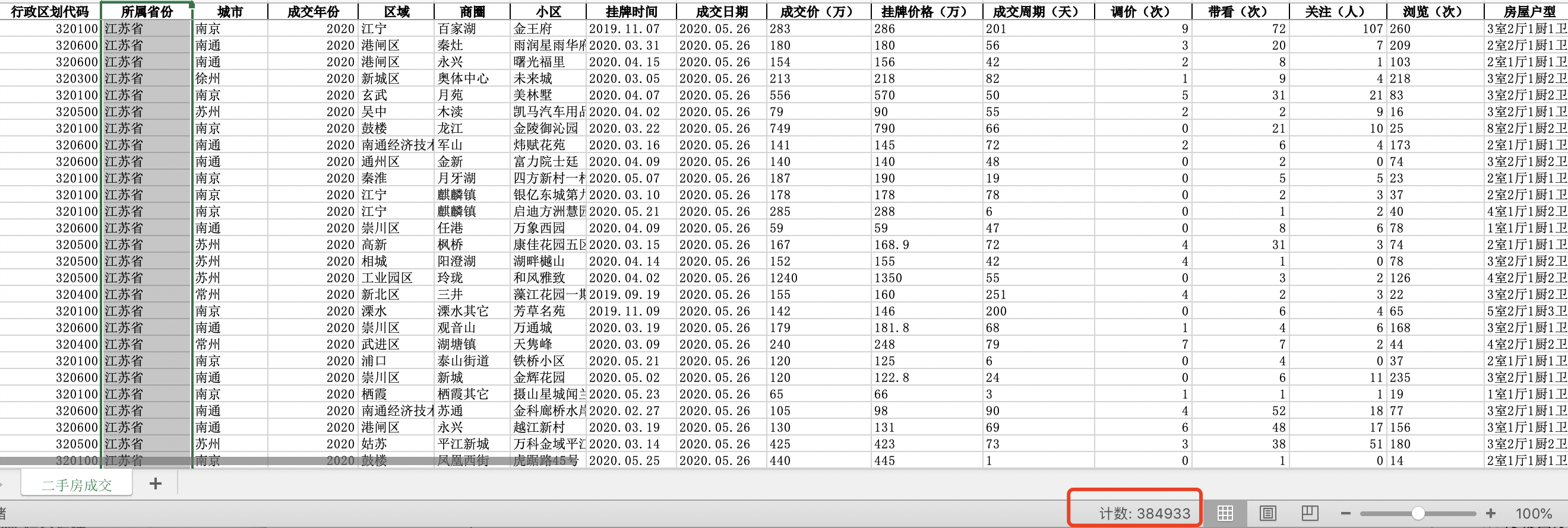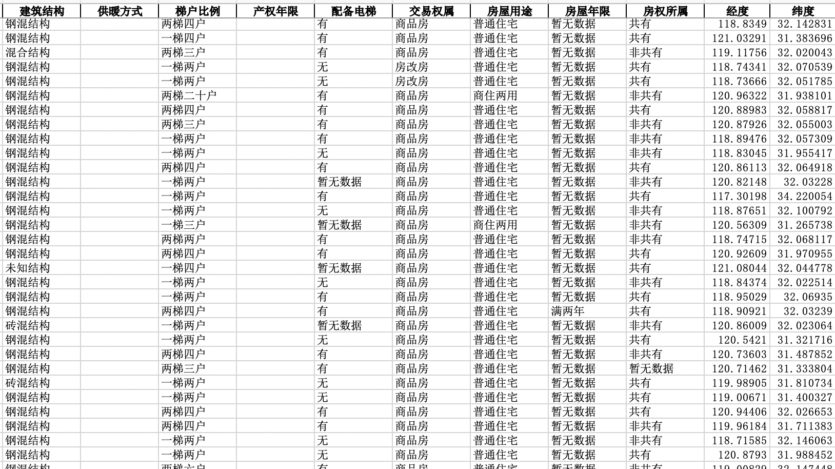 江苏省各地级市城市二手房成交明细数据-小区成交日期价格面积户型经纬度商圈建成年度(2012.5~2023.2)