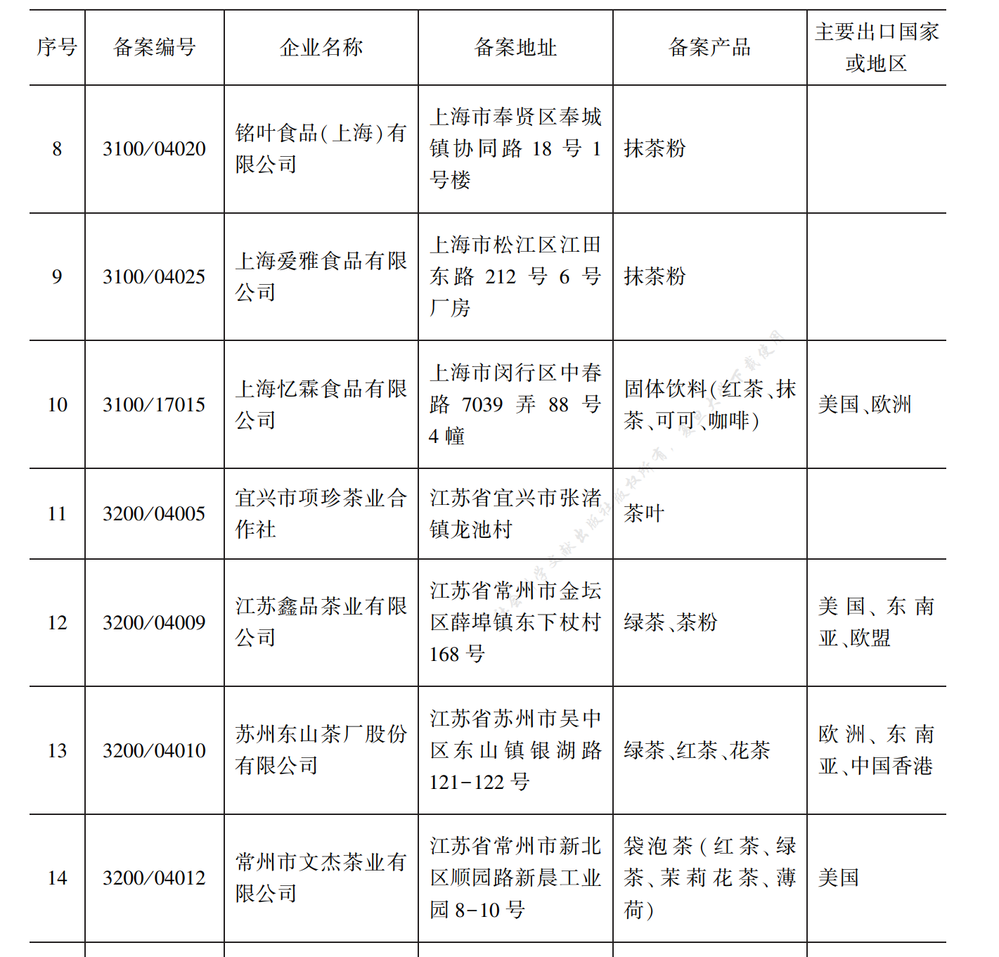 中国部分茶叶出口企业名录