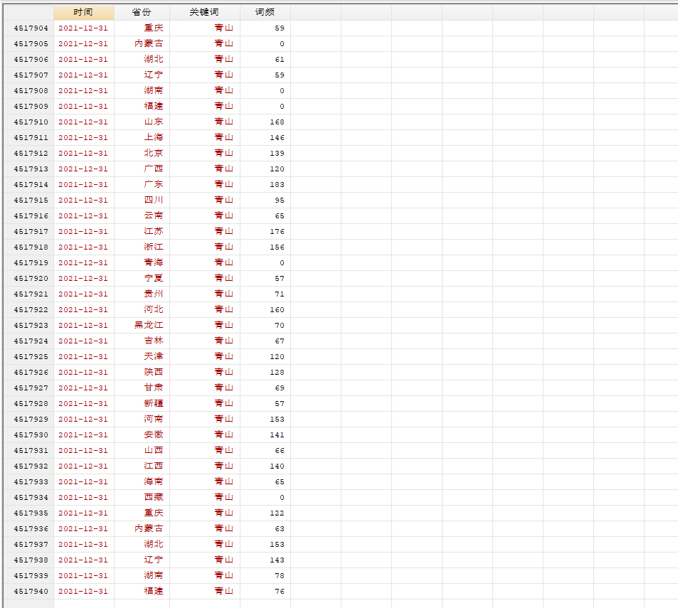 步骤一:从百度指数爬取新闻头条中各省份关于环境保护相关的关键词的日度词频数据