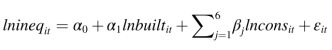 为了降低异方差性,所有变量进行了对数变换,建立如下基准回归模型: