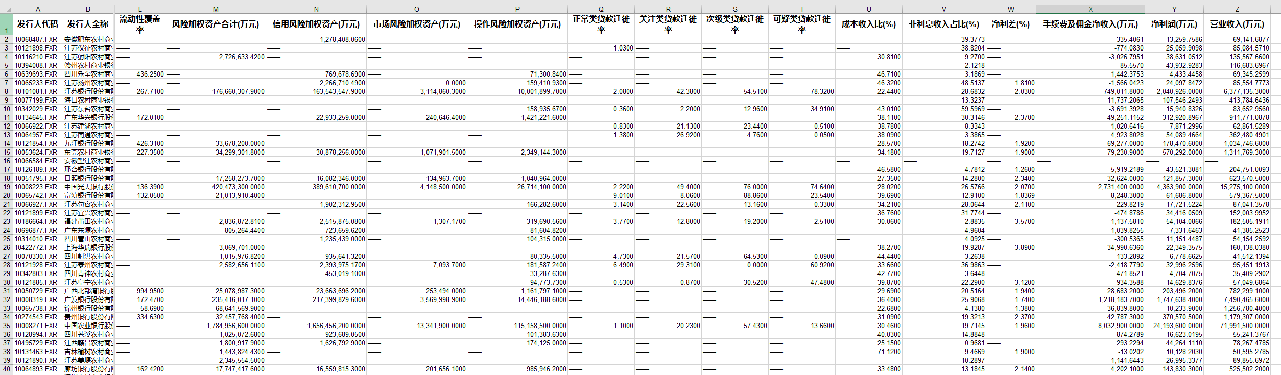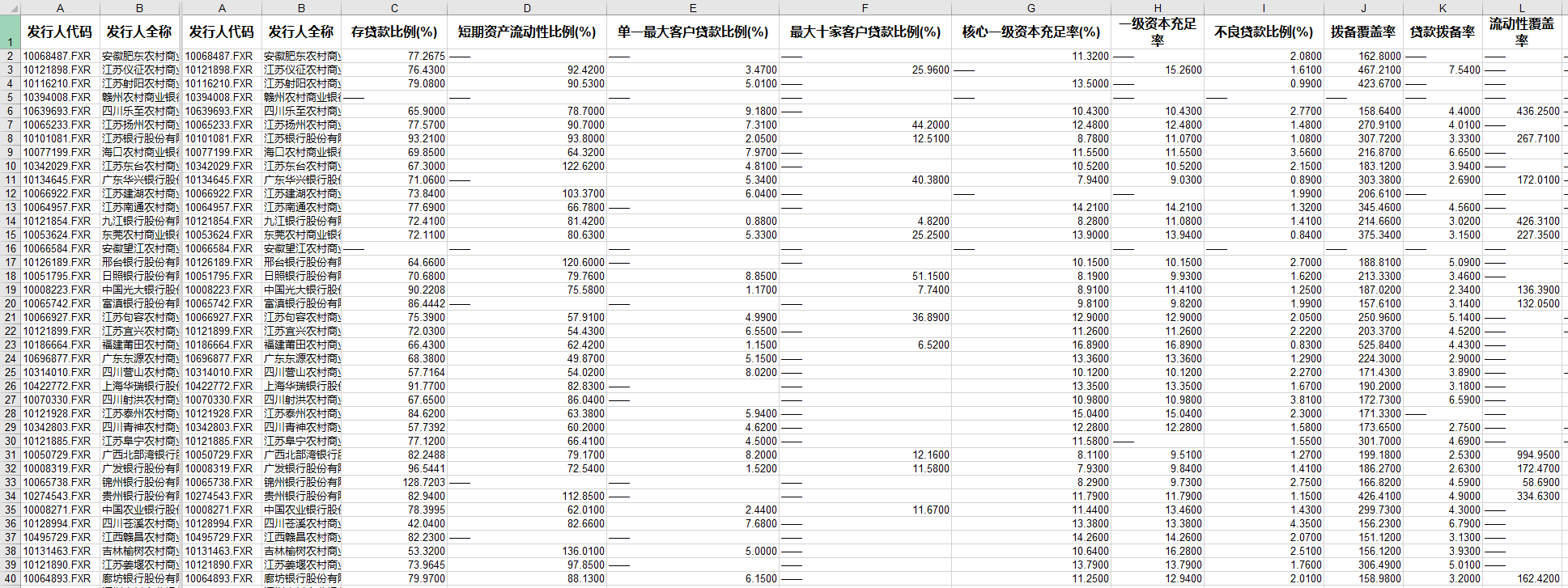整理了各商业银行年报年报数据,包括各大行、股份制银行、城商行、农商行,26个指标的统计。城商行、农商行年报披露的数据维度相对较少。集合多指标。