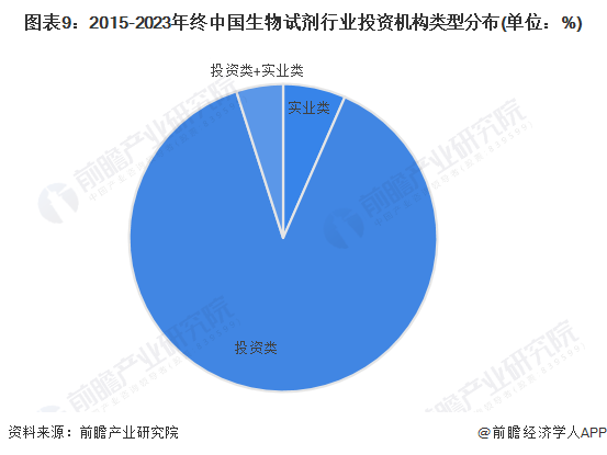 从投资主体类型来看,中国生物科研试剂行业多受到来自投资机构的融资,近九成的投融资事件的投资主体为投资类机构,代表性投资机构有红杉中国、招商致远资本、中信建投资本、博时基金等;此外,有少数实业类企业也参与到投融资活动中,如贝达药业、朗姿股份、泰康保险等。