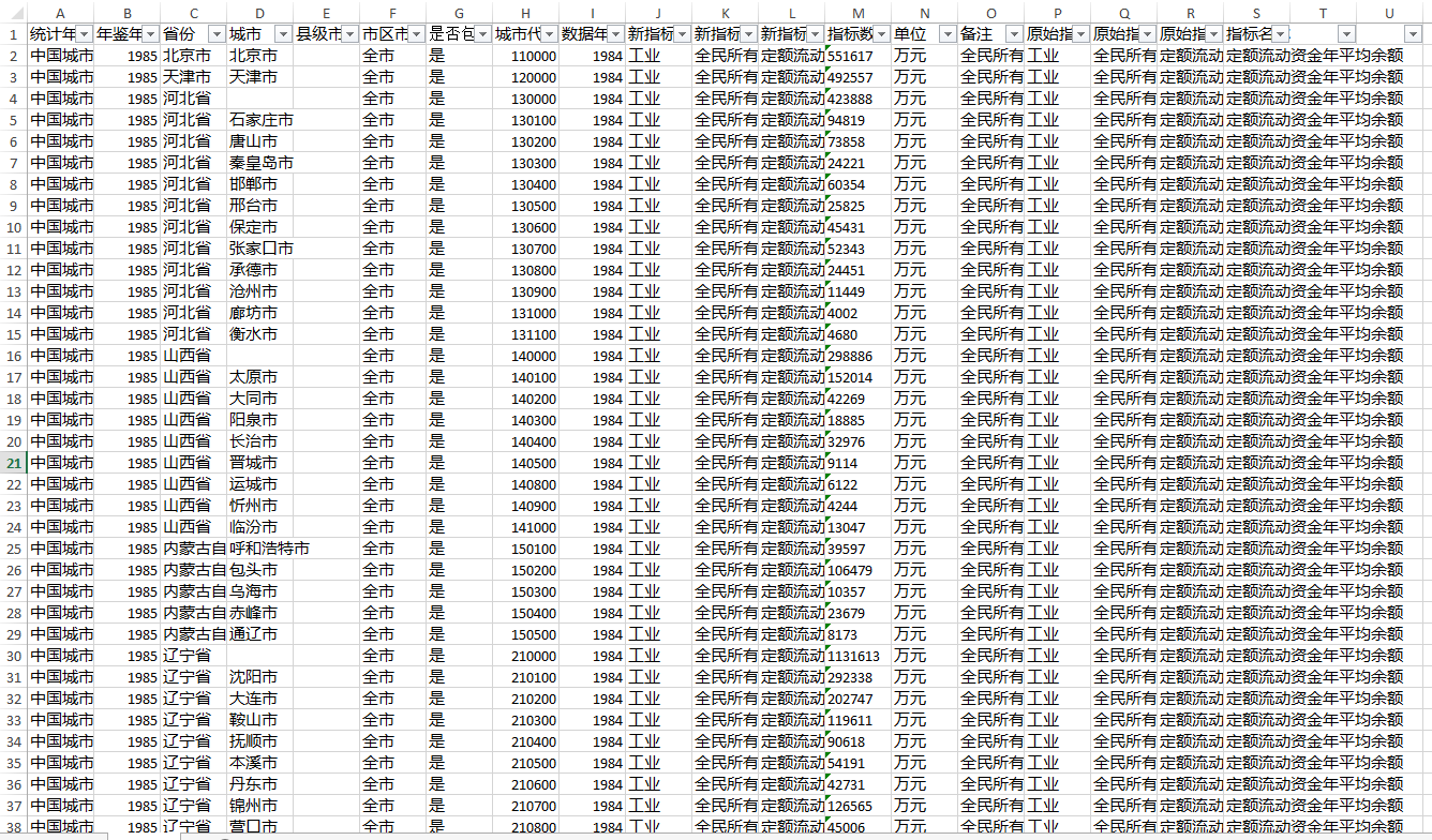 注意:数据把横跨36年相关分类的不同的指标数据都罗列出来了,因此不是所有指标从1984-2020年都有数据,敬请留意。