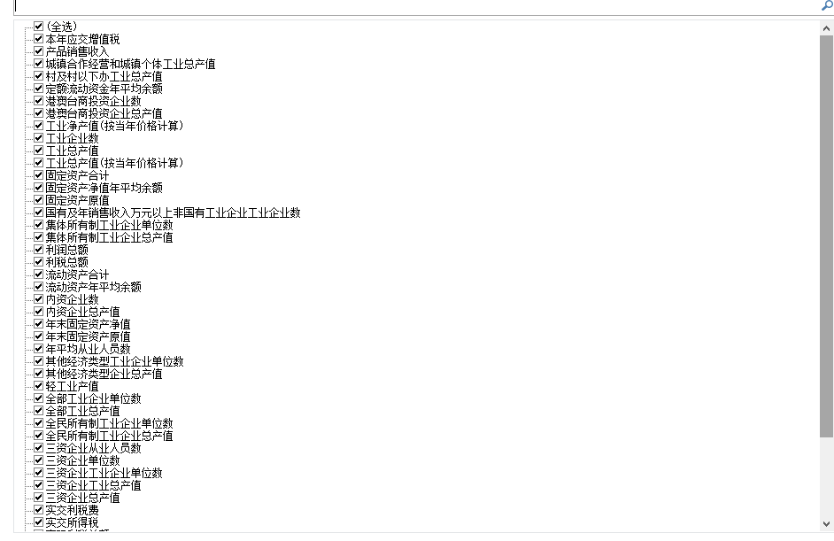 本数据为工业指标大类,包含以下指标分类: